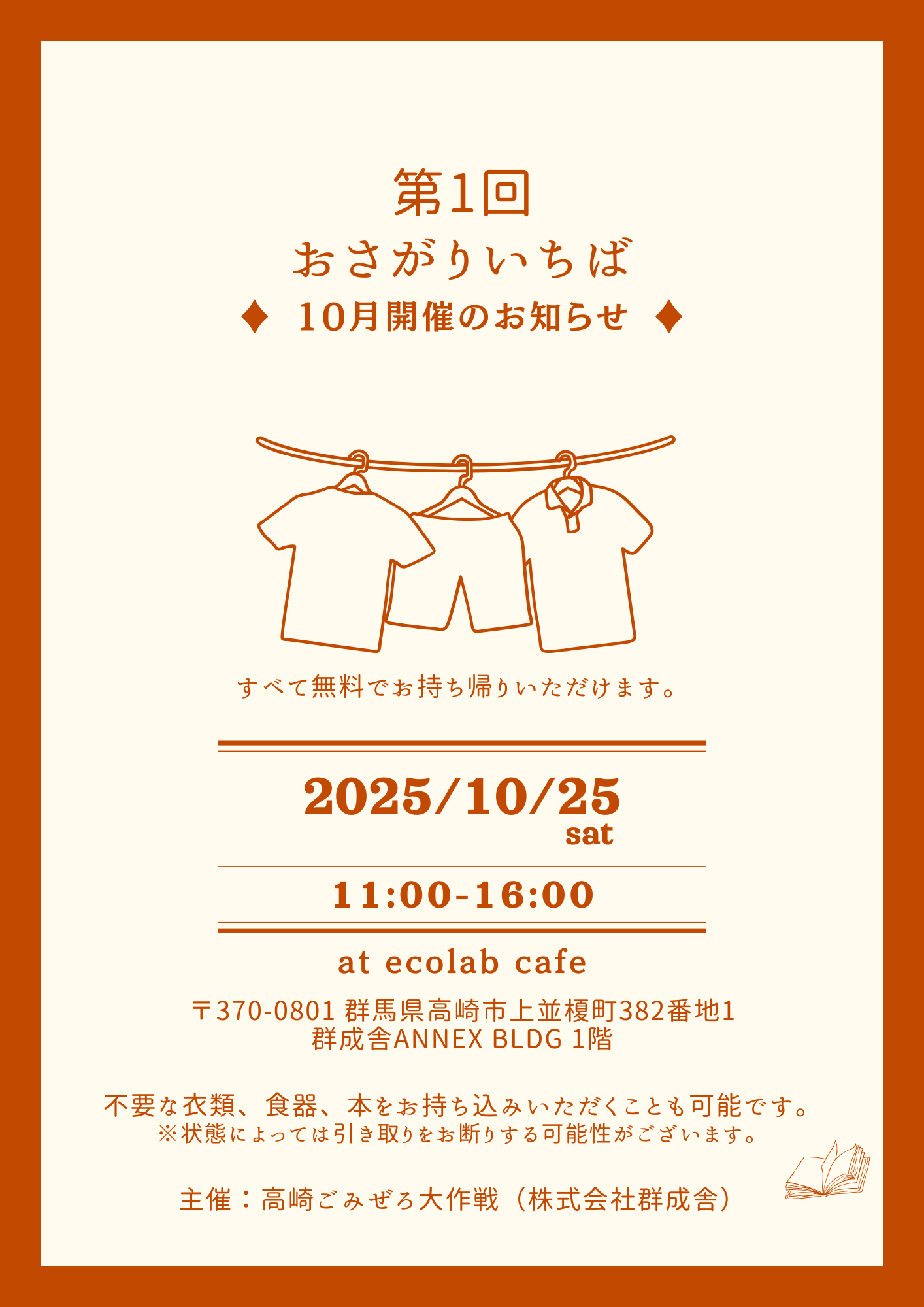 第1回 おさがりいちば 10月開催のお知らせ