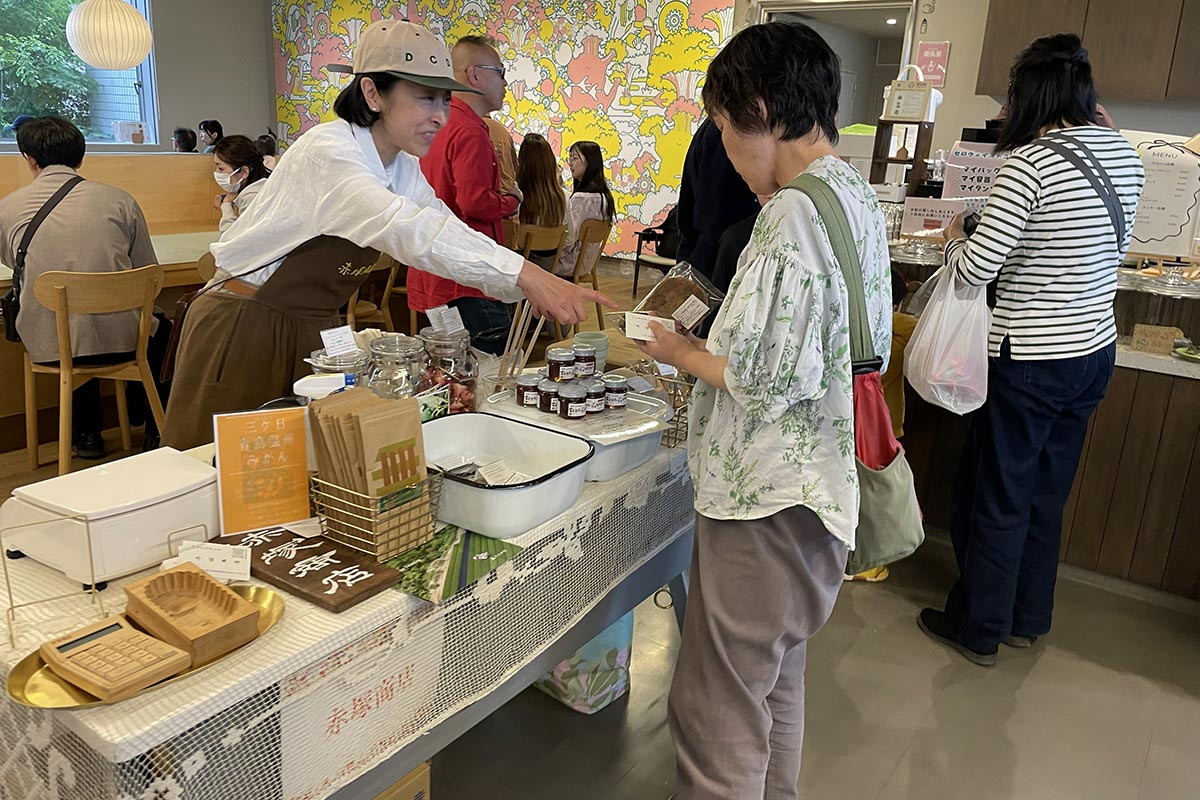 赤塚さんは包装容器自体が100%リサイクル材になれば廃棄物の削減に直結すると考え、始めの一年は店頭での包装容器の提供をゼロにしていた。だが、贈り物を探しに来たり、ふらりと立ち寄ったりしたお客さまに対応するために、今では再利用を推奨しつつプラスチックの袋も販売している。「諦めたのではなく、今出来ることを考えようと思いました。まず大事なのは続けることです」。