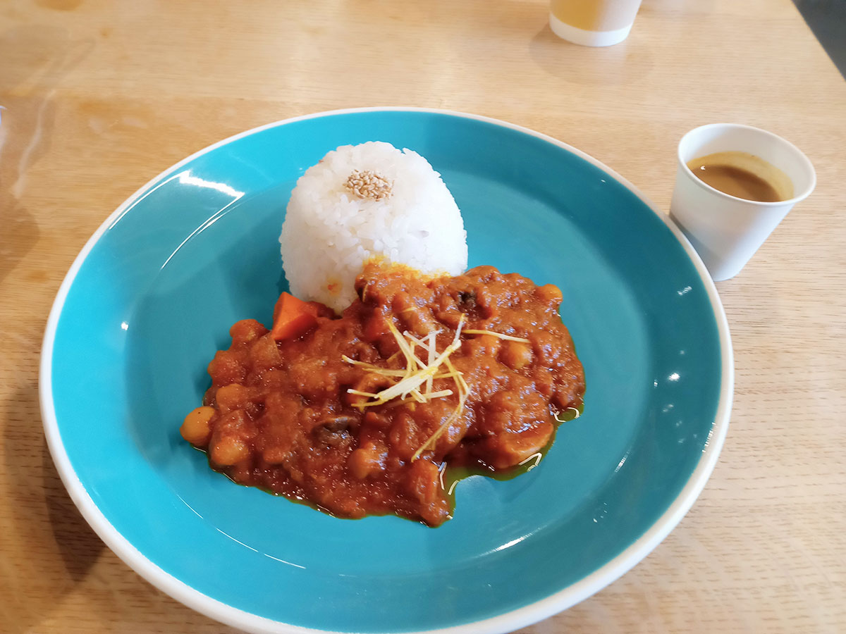 当日は20数名の参加者を得て、『ランチ付きヴィーガン体験講座』を実施。アリサンからは営業担当の藤田崇さんと、阿里山カフェのマネージャーで調理担当のヤーウェンさんをお迎えして、アリサンのこれまでの歩みや基本的な理念などを伺いながら、「大豆ミート」を使った麻婆豆腐やヴィーガンカレーなどを味わいました。大豆ミートは健康や環境に配慮してお肉の代替品として使用する人も多い食材。その美味しさには驚きや発見がありました。